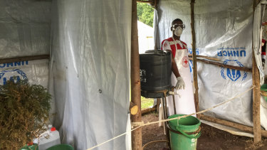 People crossing the border at Kasindi, on the border between Congo and Uganda, have health checks.Credit:AP