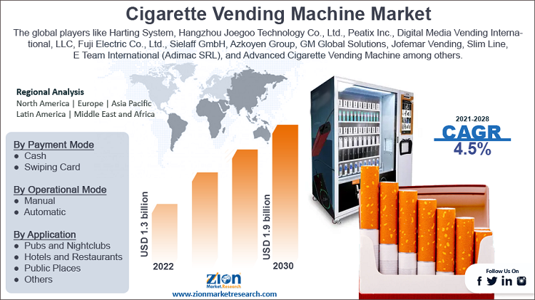 [Latest] Global Cigarette Vending Machine Market Size/Share Worth USD 1.9 Billion by 2030 at a 4.5% CAGR: Zion Market Research (Industrial Trends, Report, Analysis, Players, Outlook, Forecast, Growth, Value, Segmentation)