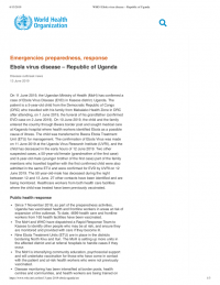 13 Jun 2019 Ebola virus disease – Republic of Uganda : Disease outbreak news, 13 June 2019 Reportfrom World Health Organization Published on 13 Jun 2019 — View Original